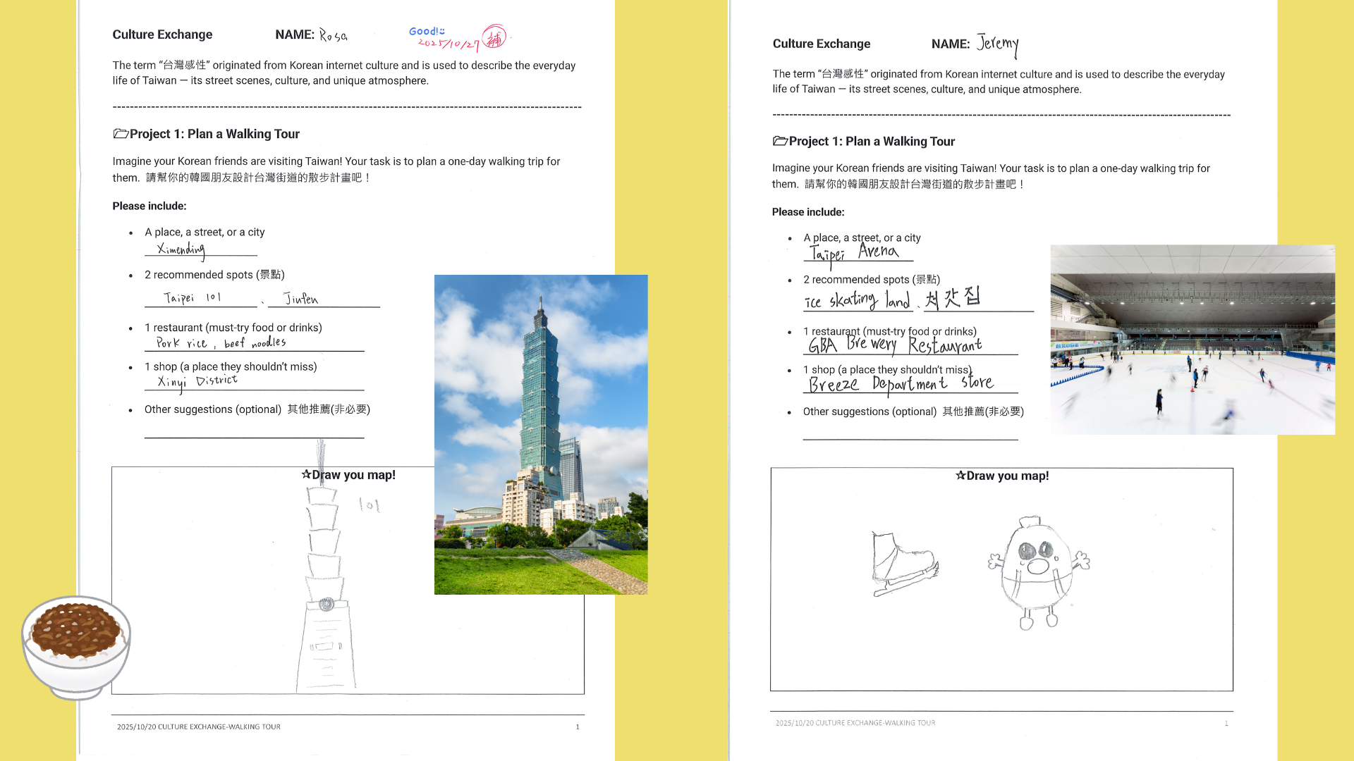 Plan a Walking Tour:模擬韓國朋友來台灣,設計一日遊行程。