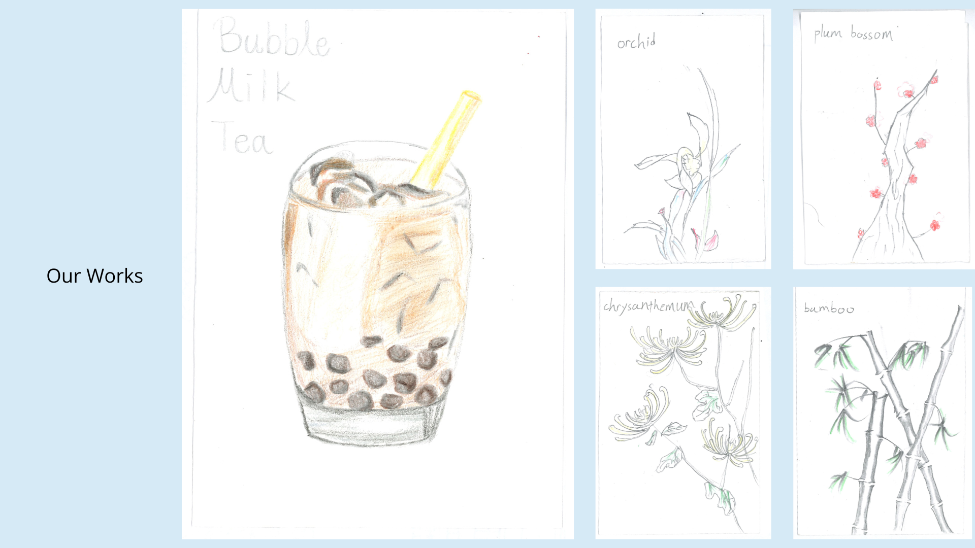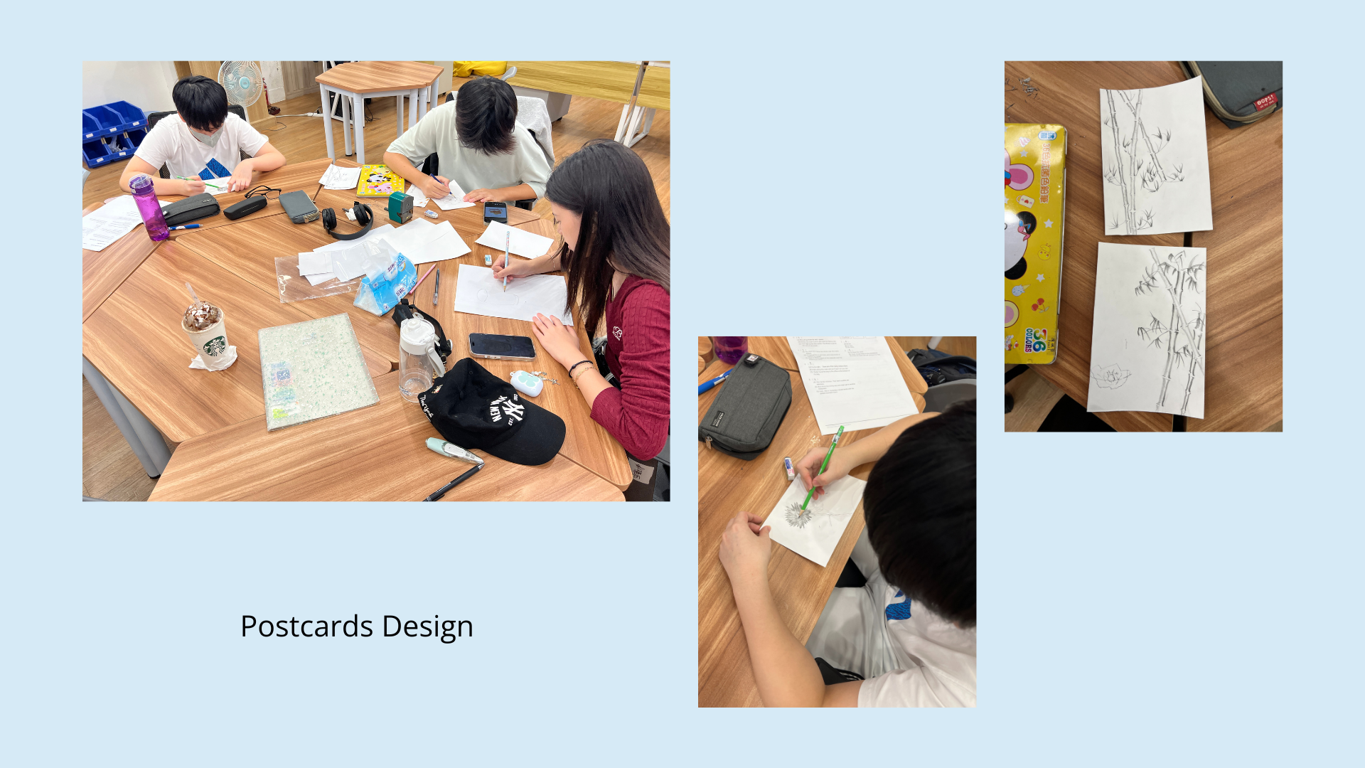 Postcard Design & Writing:動漫男孩的繪畫魂幫大家設計了明信片封面,以梅、蘭、竹、菊為主題,然後大家寫上想對韓國朋友說的話。