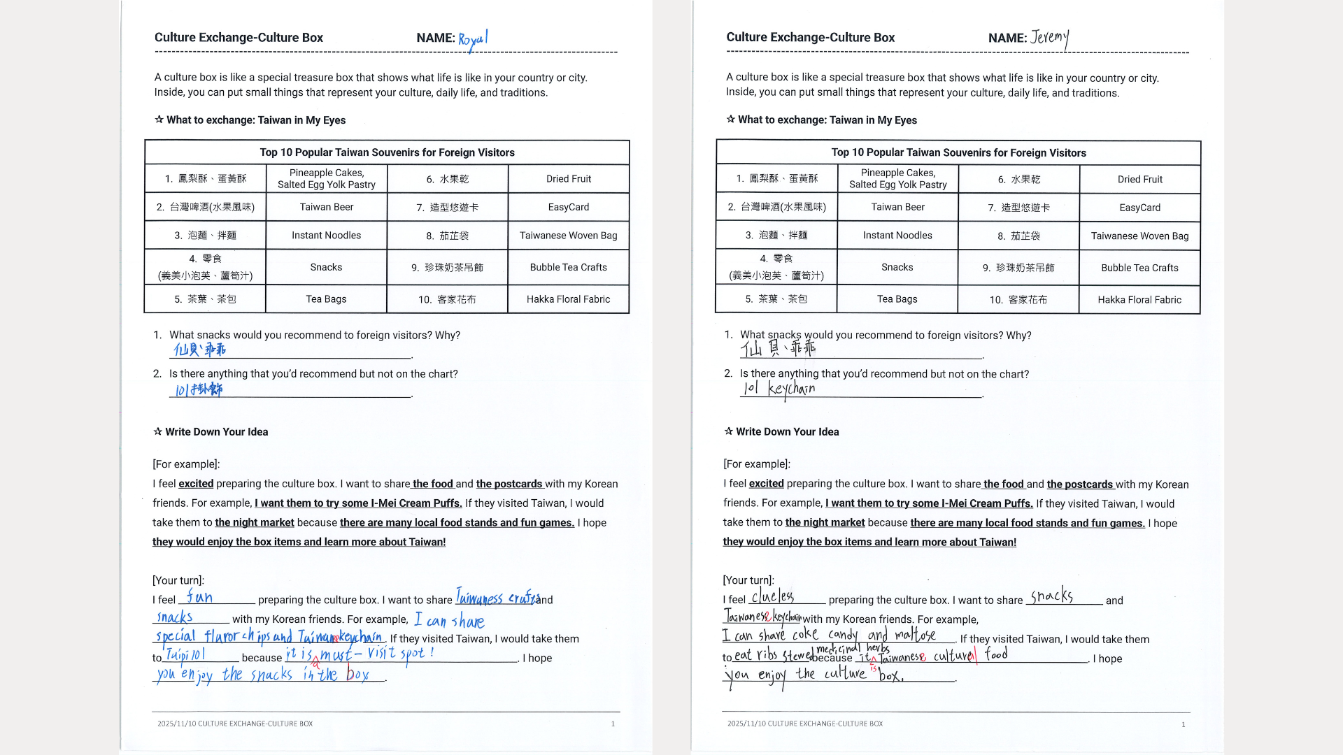 但看到孩子願意一起規劃、討論、完成所有細節,甚至許願下學期想再交流更多國家,真的覺得一切都值得!