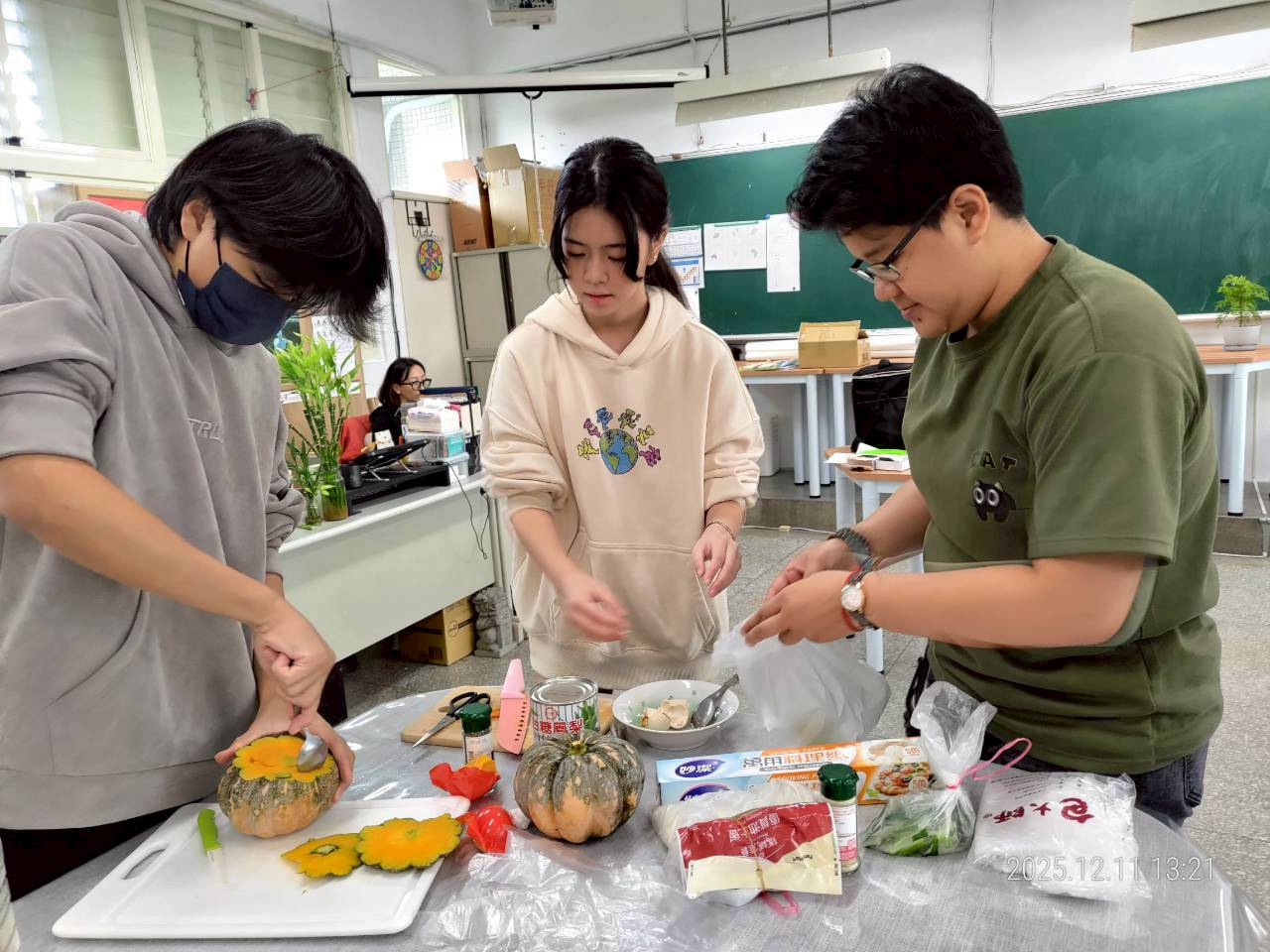 從隨口喊出「南瓜」開始,有人想到用南瓜當作碗,接著變成金沙南瓜,鹹蛋也跟著出現,所有想法湊在一起,只能先做了再說。