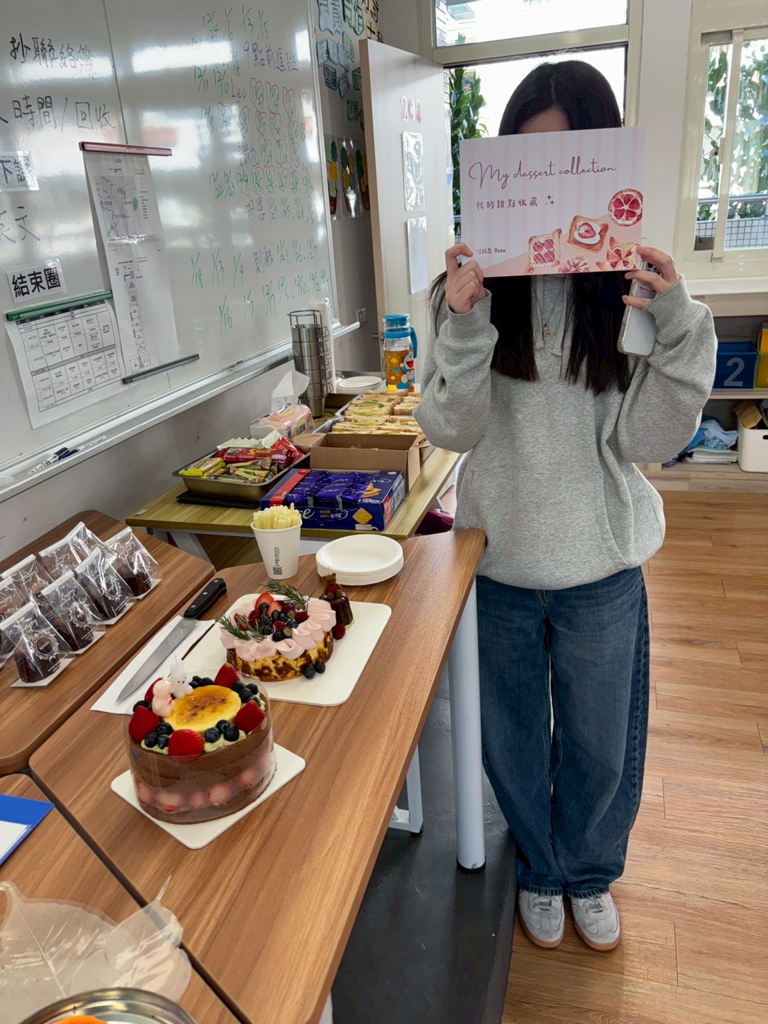 為了讓她維持練習的手感,這學期在課程設計時,我們特地預留時段,讓她幫大家上甜點課,或透過練習甜點和繳交食譜累積點數。